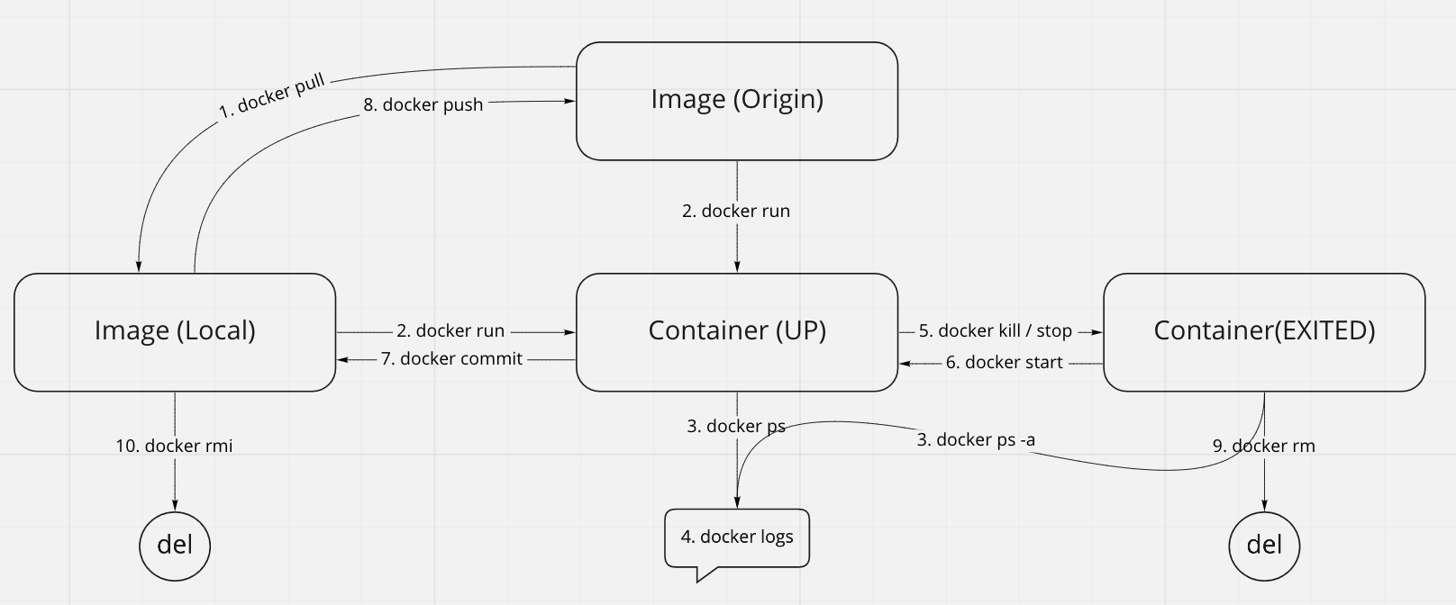 | 5. docker kill / stop | 컨테이너를 정지하거나 강제종료한다. | docker kill/stop containerID|Name |